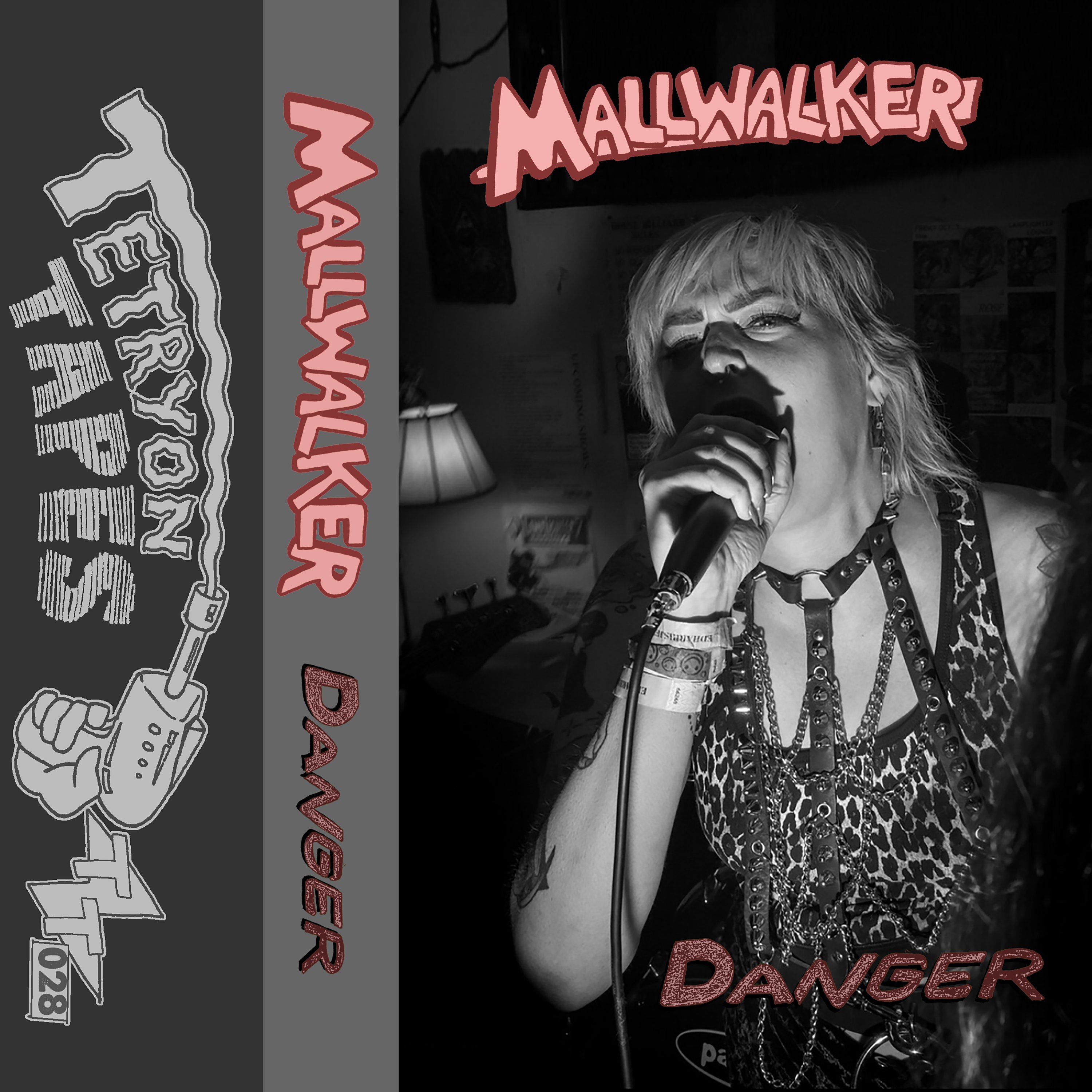 TT028 - MALLWALKER - ‘Danger’ - A posthumous celebration of the late Sarah 'Danger' Underhill. MALLWALKER was a powerhouse of a band and recorded in 2018 for an LP that never came out. Compiling the studio recording on the A side and a live recording I did for the band when they came through Buffalo, NY on the B side, 'Danger' allows the listener to really witness what MALLWALKER was all about as a band. A truly bittersweet experience helping make this a reality, we are so incredibly grateful to the remaining band members for being open to this and are humbled by the ability to share this around. If you get one singular Tetryon Tapes release, this is the one. RIP to the absolute realest there ever was.